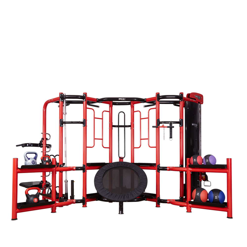 • 功能 可最少提供9人同时练习,12种以上的练习方式,以下只列出一些常用的练习项目:弹力球运动、踏板运动、单边举重杆、吊绳、壶铃、双杆、甩绳拉力训练、二头肌训练、平拉训练、双杆引体向上等